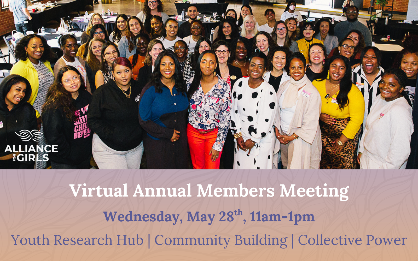 Join us on Wednesday, May 28th for our virtual Annual Members Meeting, one of Alliance for Girls*' hallmark events where members of AFG (including service providers, community leaders, parents/caregivers, advocates, and girls and gender-expansive youth) come together to connect, celebrate each other, strategize, and learn from one another.